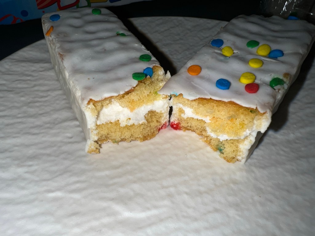 Don’t get me wrong. There is a vague taste of vanilla. The colours are nice and bright. But I can’t get past the coating. It’s just a little too thin and oily for them to really be a nice treat. If they made it a little thicker and a little more solid, then they might be perfect birthday cakes. But without that they’re just not quite good enough.